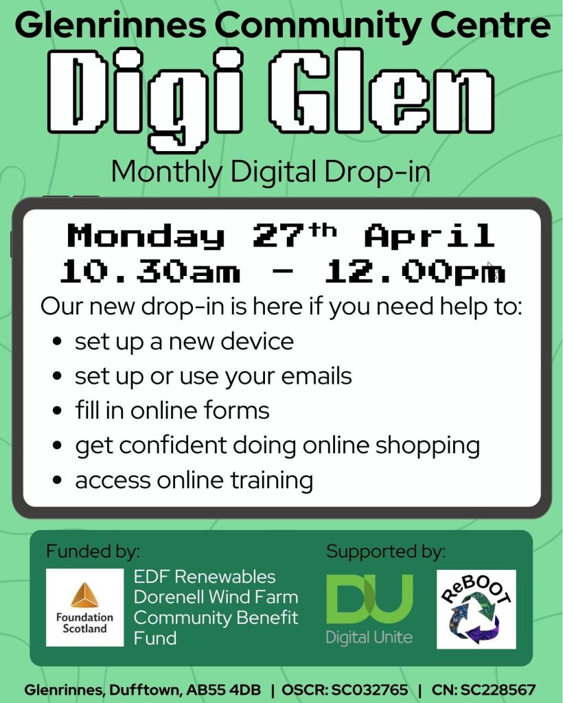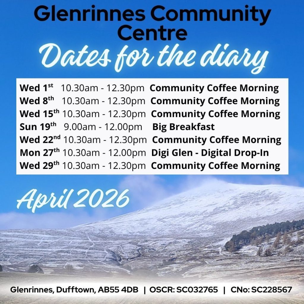 Our Community Center is located in the heart of Glenrinnes. A welcoming space where we host our own community events, as well as being available to hire for parties, meetings or events.